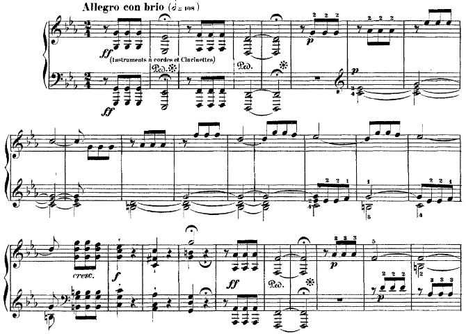 In this sheet music sample from the first movement arranged for piano by the famous pianist and composer Franz Liszt, you will notice the half-cadence (Imperfect cadence