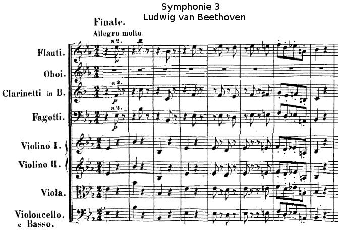 This royalty-free musical sample from Ludwig van Beethoven's Symphony No. 3 Finale in E-flat major was recorded by the Czech National Symphony Orchestra (source, Creative Commons Attribution 3.0 license).