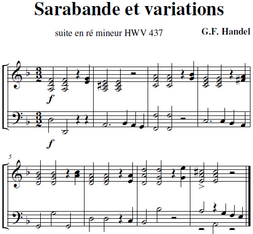 Here is an example of a 3/2 time signature, with the musical work Sarabande and Variations in D minor from the composer George Frideric Handel.
