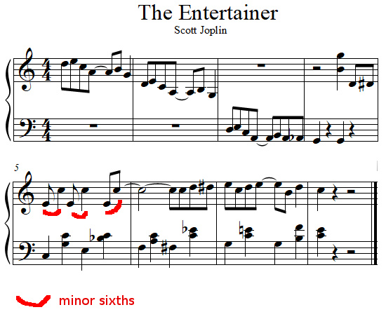 Scott Joplin's ragtime entitled The entertainer has three consecutive minor sixths:
