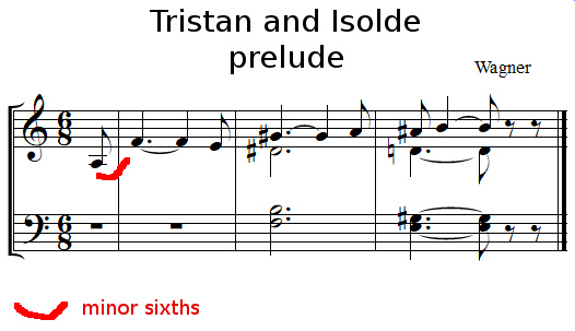 The first interval of Richard Wagner's Prélude to Tristan and Isolde is a minor sixth: