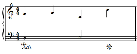 The first symbol indicates that you have to press the sustain pedal and the second one to release the pedal. Sometimes you'll find the Piano Pedal symbol , which indicates that you have to press the pedal for the duration of the symbol: